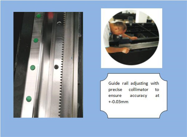 | 名称:精密直线导轨 先进的切割系统,激光动力和伺服机芯完美契合,采用进口高精度齿轮和齿条传动系统,可更换双工作台,确保更高的加工速度和精度。 | |